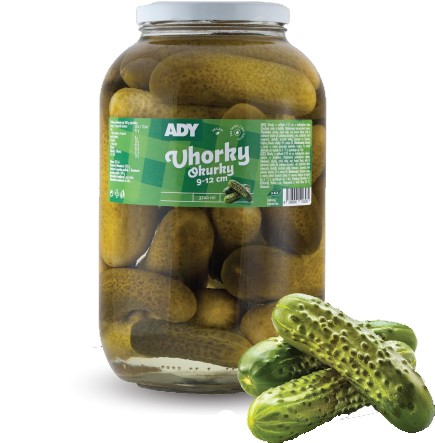 Uhorky 9-12cm 3720ml, 3500g /PP1800g/ sklo Ady
